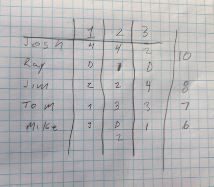 We were able to run three races, with one race having to be canceled due to an abandoned fishing line “clotheslining” the fleet at the first mark — Luckily Ray Mount was there on safety boat to cut the line so we could have our final race.